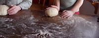 Men igår så lärde jag barnen att runddriva och slå en limpa. De har pratat om det ett tag, att de vill lära sig, och nu var det dags!