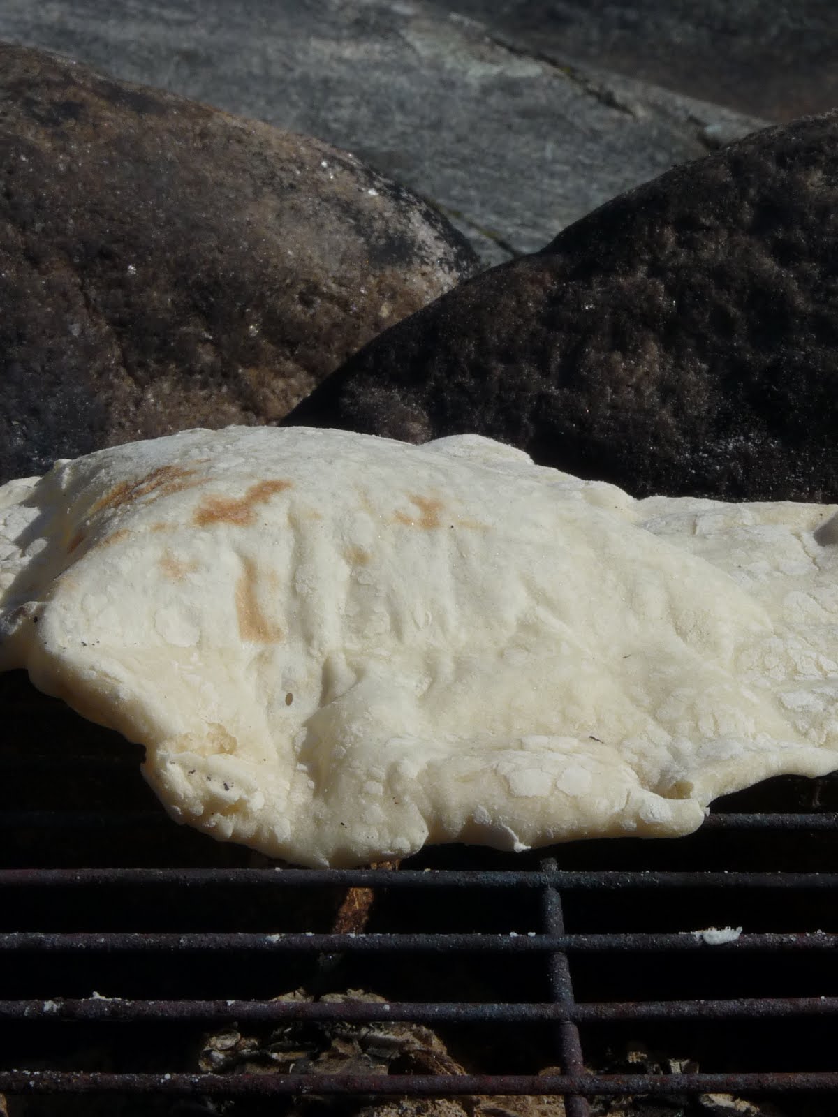 Sen gräddade jag bröden över glöd på ett galler. Det här innebär att en del blir perfekta, och en del bröd lite brända. Men till nyfångad fisk spelar det liksom ingen roll.