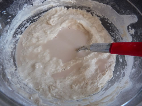 Jag geggade ihop mjöl och vatten och lät det stå i 3-4 timmar.