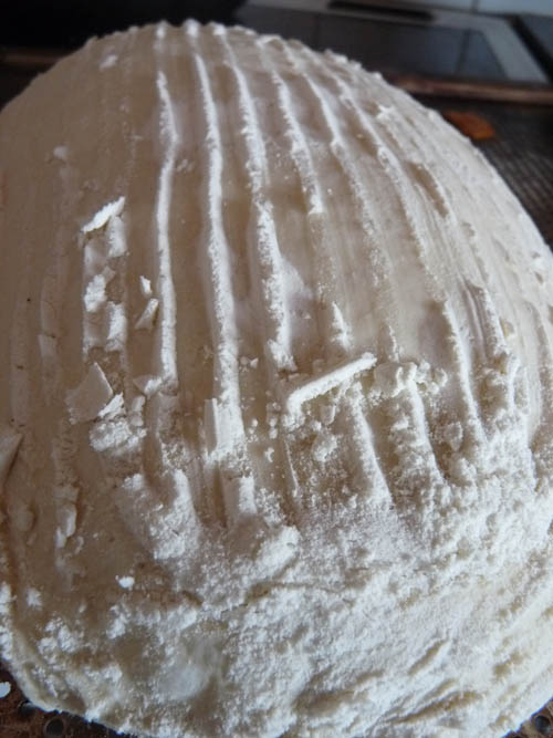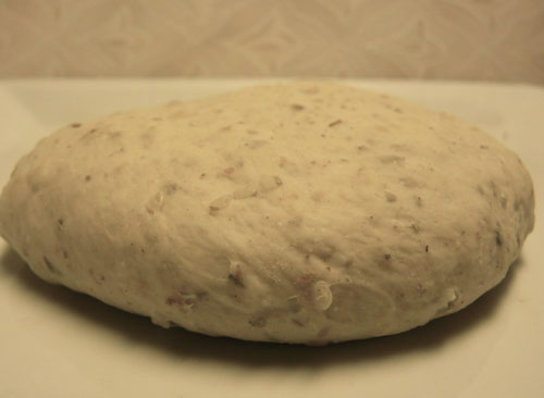 Degen kördes långsamt i 8 minuter utan salt. Därefter 2 minuter med salt på något högre hastighet. Sen fick degen vila ca 1, 5 timme.